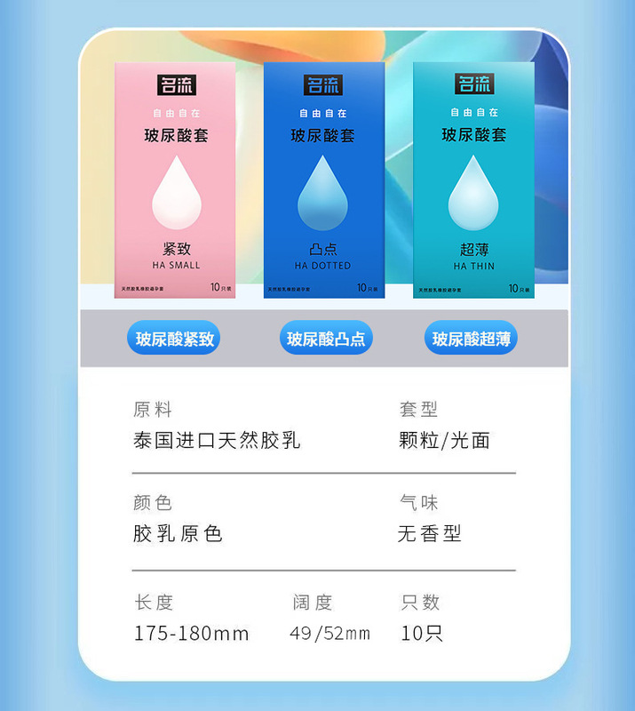 - 規格:名流000無感套玻尿酸水潤滋養【10隻裝】