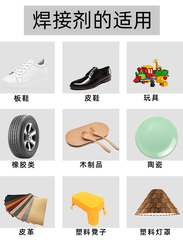 - Adhesive material types: rubber, metal, wood, handicrafts, various shoes, etc.