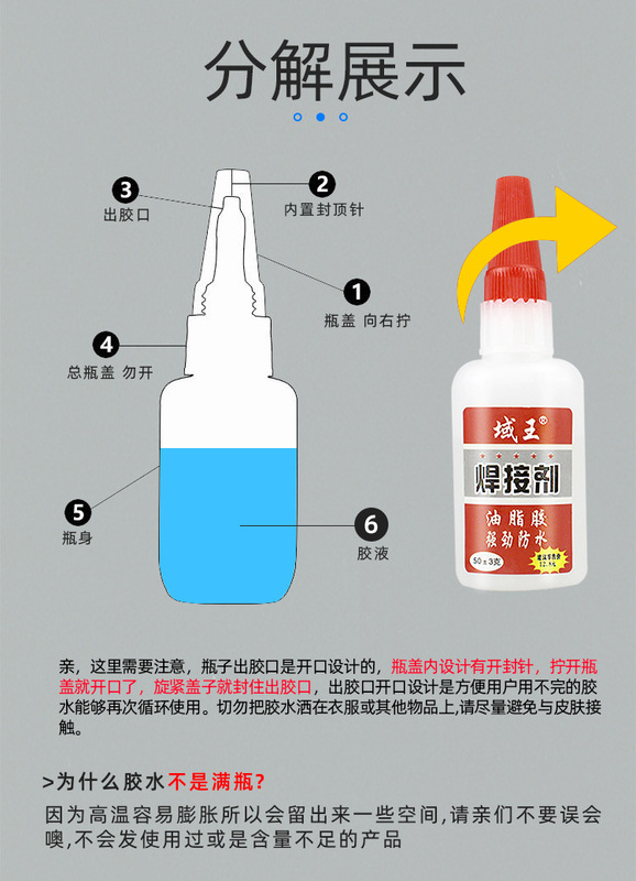 - Model: Small bottle of oily glue welding agent