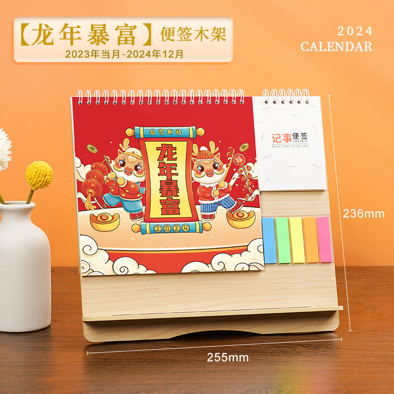 - Specification: Wealth in the Year of the Dragon / Wooden Stand Notebook / Gift Sticky Notes