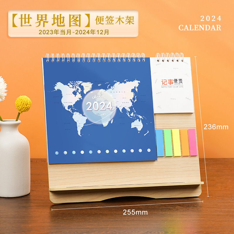- Specification: World Map / Wooden Stand Notebook / Gift Sticky Notes