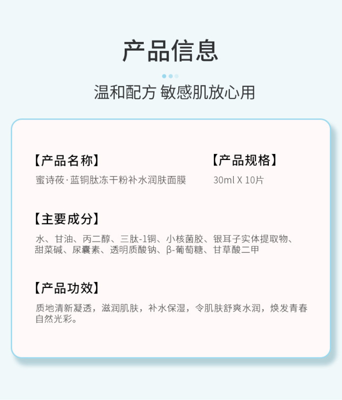 - Product Specification: Blue Copper Peptide Freeze-Dried Powder Hydrating & Moisturizing Mask [10 Sheets]