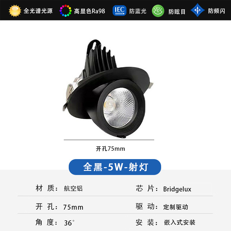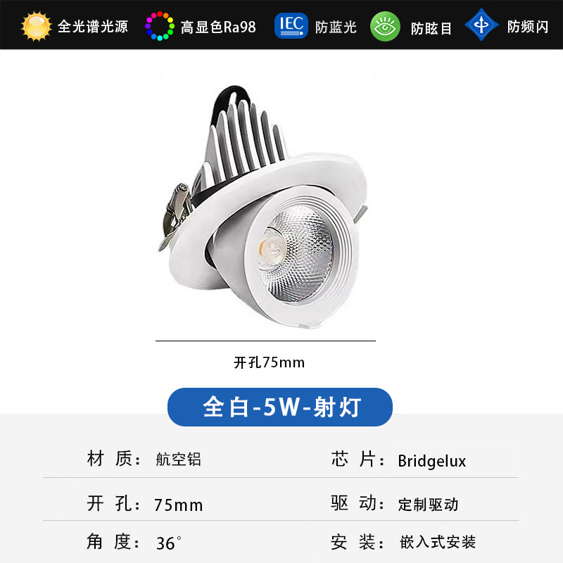 - Power: White 7W, Cut-out 75mm