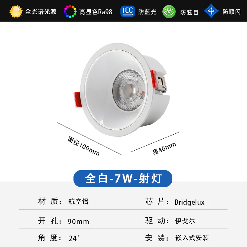 - Power: 7W Downlight Imported Full-Spectrum Chip + Igor (All White)