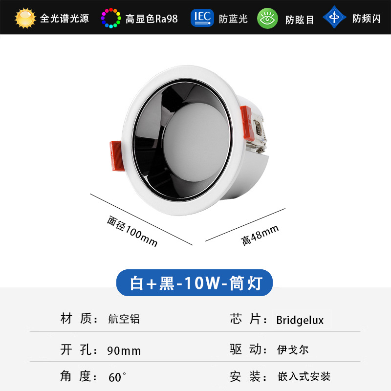 - Power: 10W Downlight Imported Full-Spectrum Chip + Igor (White+Black)