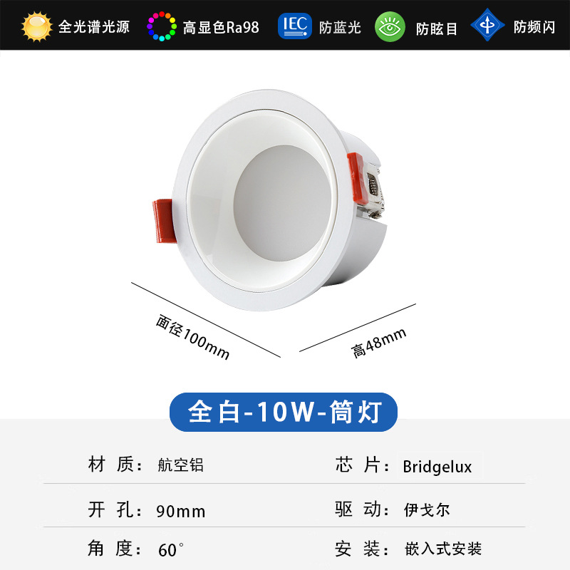 - Power: 10W Downlight Imported Full-Spectrum Chip + Igor (All White)