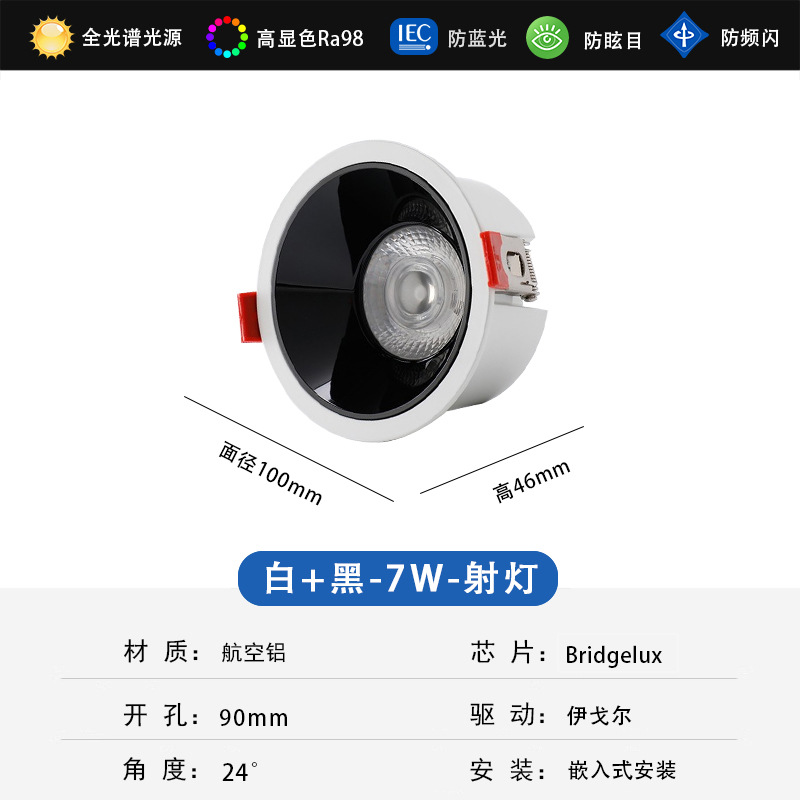 - Power: 7W Downlight Imported Full-Spectrum Chip + Igor (White+Black)