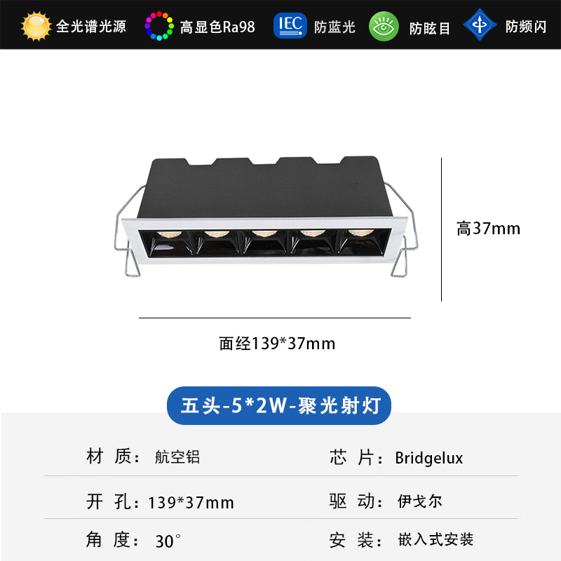 - Power: 5*2W Cut-out 139*37mm