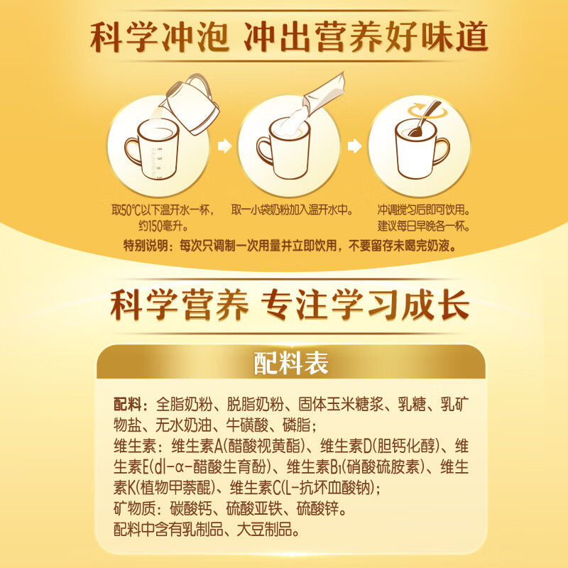 - Packaging specifications: 400g bag of nutritional milk powder for tall students