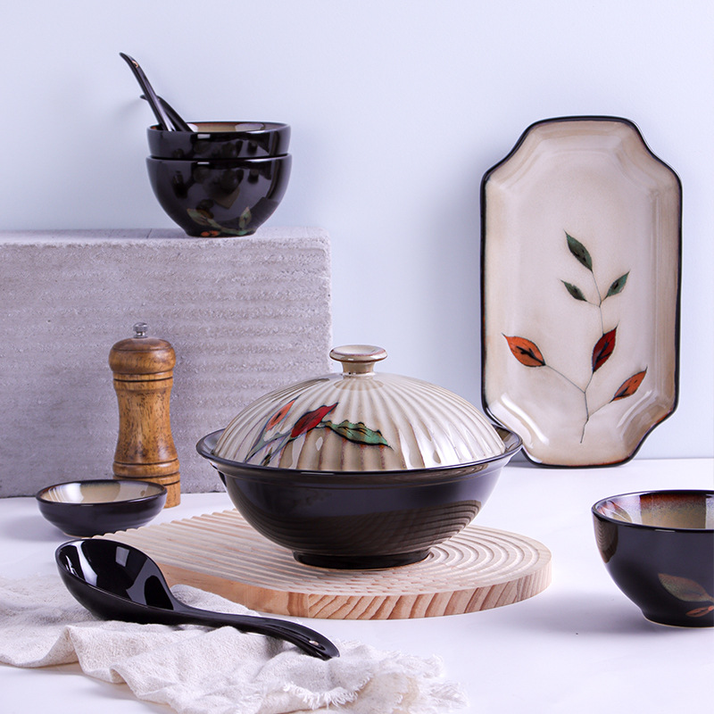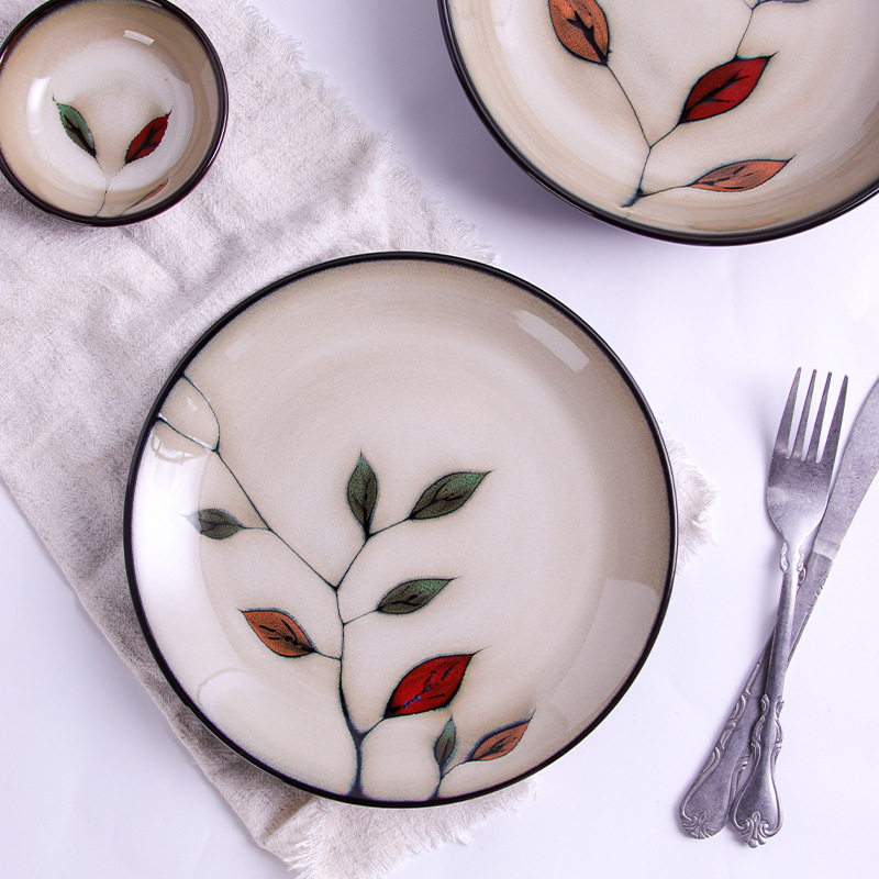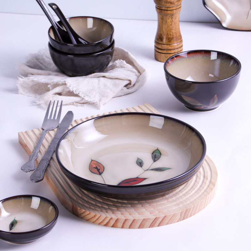 - Style: Japanese Creative Hand-painted Set, Combination of Colored Leaves and Floral Underglaze Painting, Hand-painted Kiln Change Glaze