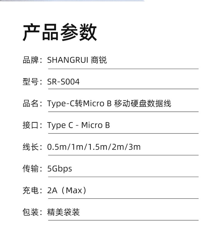 - Wire length: 0.5m, 1m, 1.5m, 2m, 3m