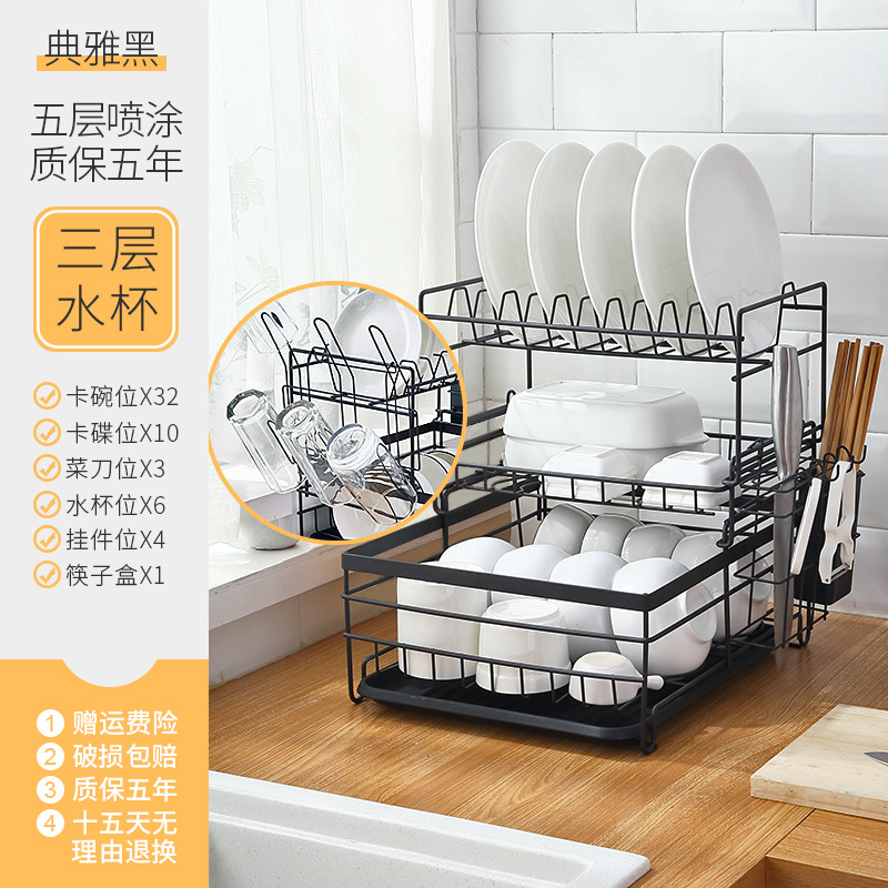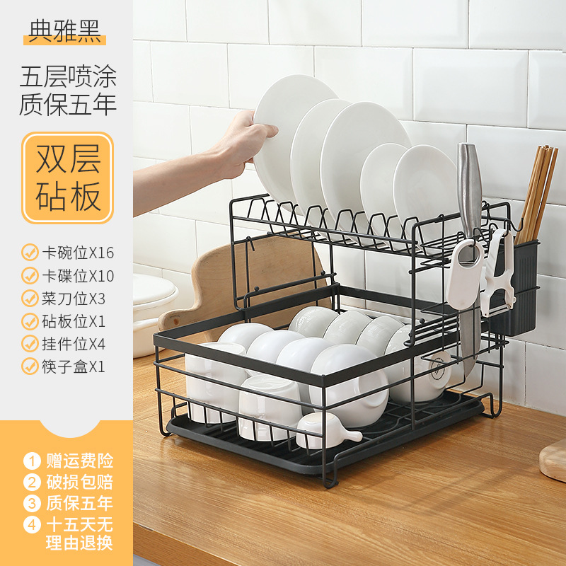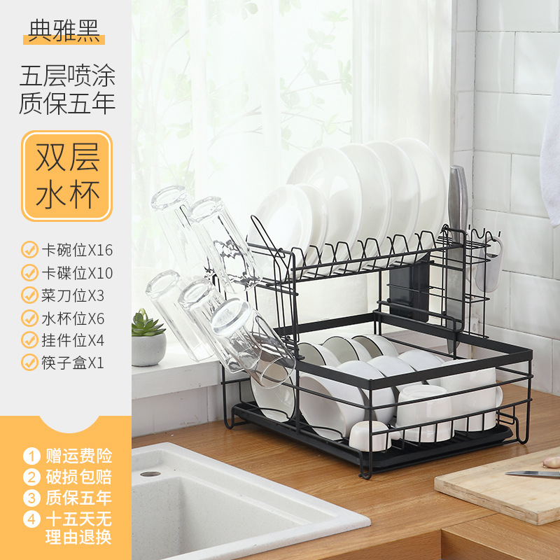 - Number of layers (specification): Black two-layer iron wire bowl rack