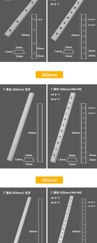 - Model: T Slider 200mm M8 Thread