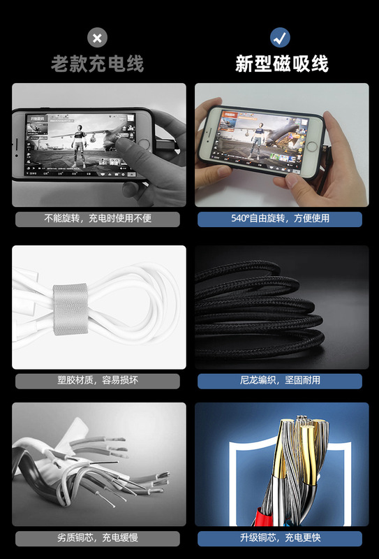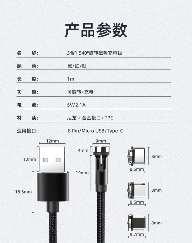 - Model: 1m cable + 3 heads (Apple/Android/type-c)