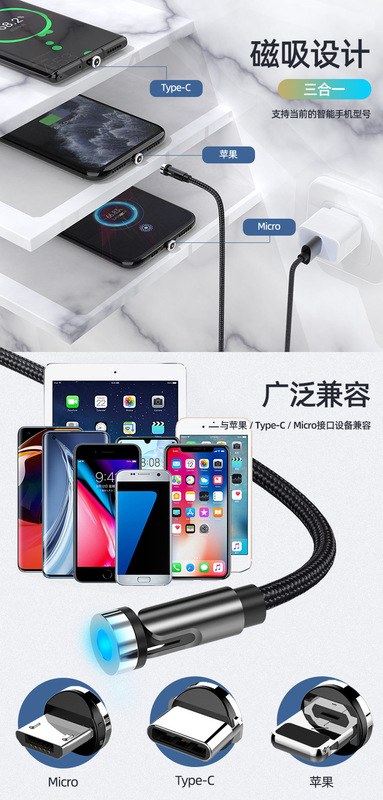 - Model: 2m cable + 3 heads (Apple/Android/type-c)