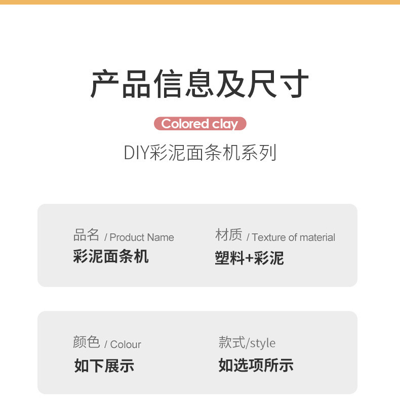 - Product Categories: Colored Clay Toys, Noodle Maker Toys, Clay Clay Toys, Play House Toys