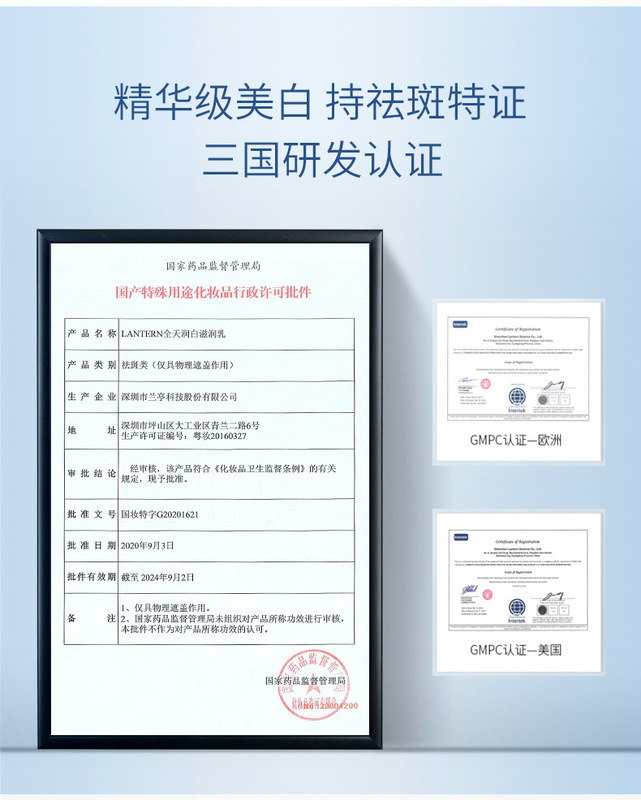 - Special purpose cosmetics certificate number: National cosmetics special character G20140031
