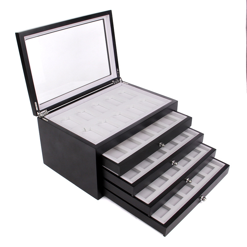 - Specifications: 50 grid black painted wooden lighter storage box/beige interior