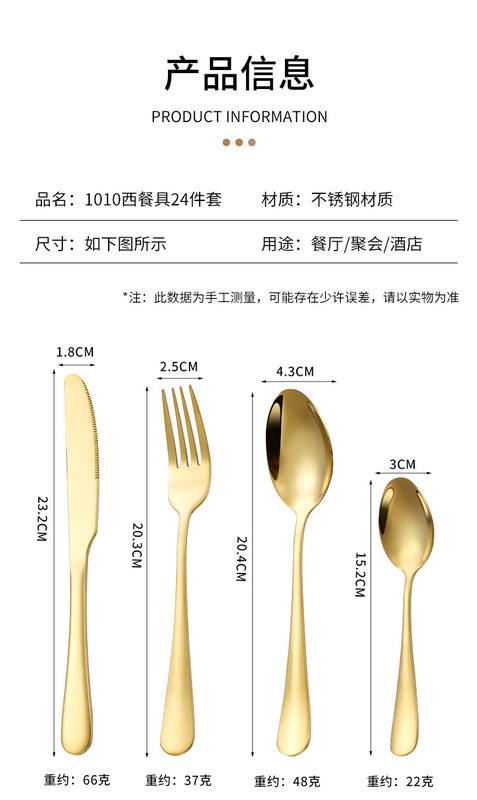 - 套裝清單:餐刀*6餐勺*6餐叉*6茶勺*6