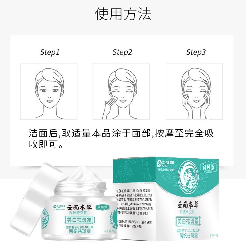 - Product specifications: Jifengtang Yunnan Herbal Whitening and Freckle Cream 30g