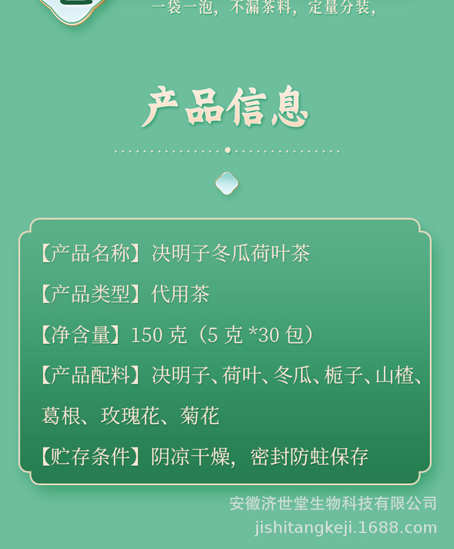 - 包裝規格:南京同仁堂決明子冬瓜荷葉茶