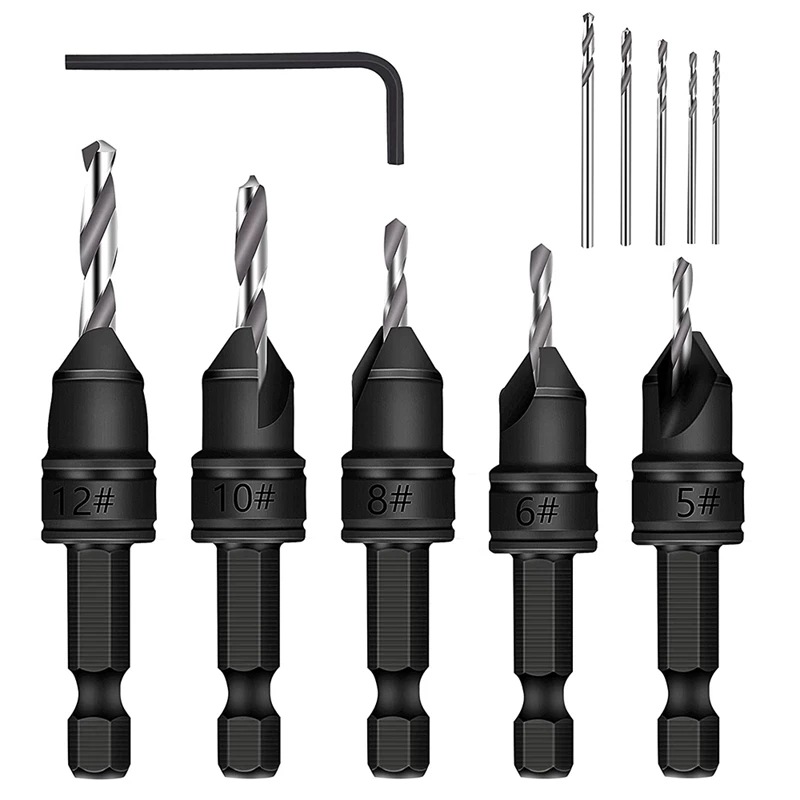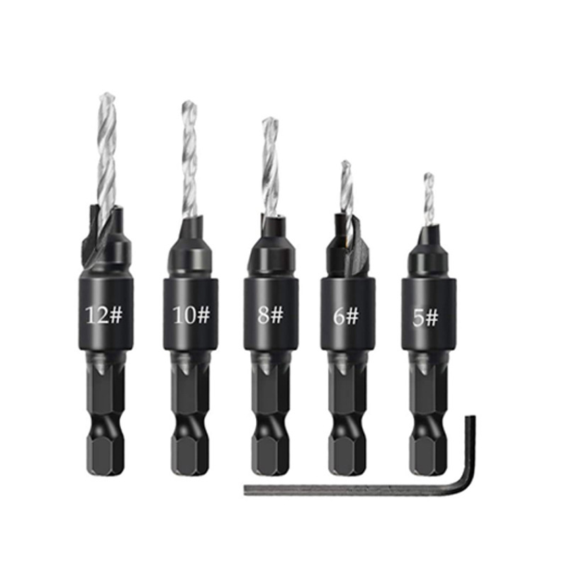 - Model: 6pc titanium-plated countersink drill bits