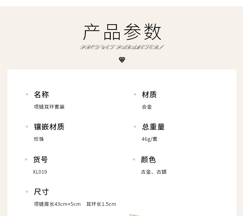 - Set combination: earrings + necklace