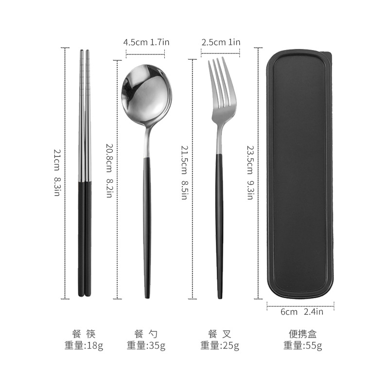 - 規格:銀頭黑色筷叉勺【三件套】