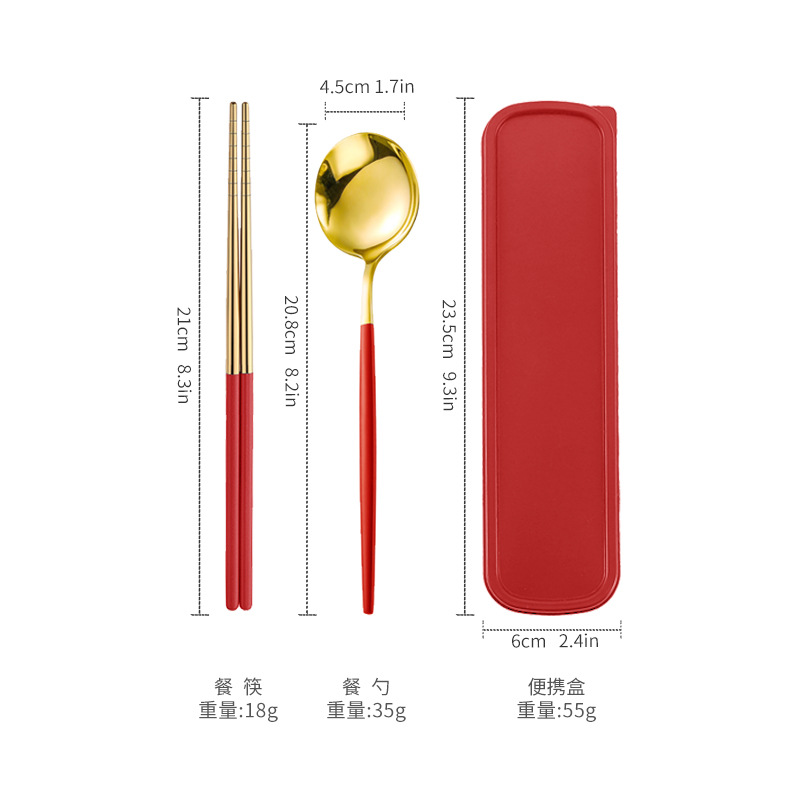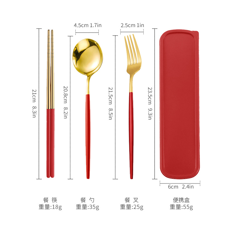 - 規格:金頭紅色筷叉勺【三件套】