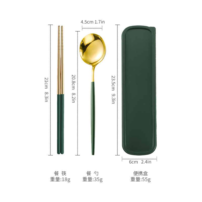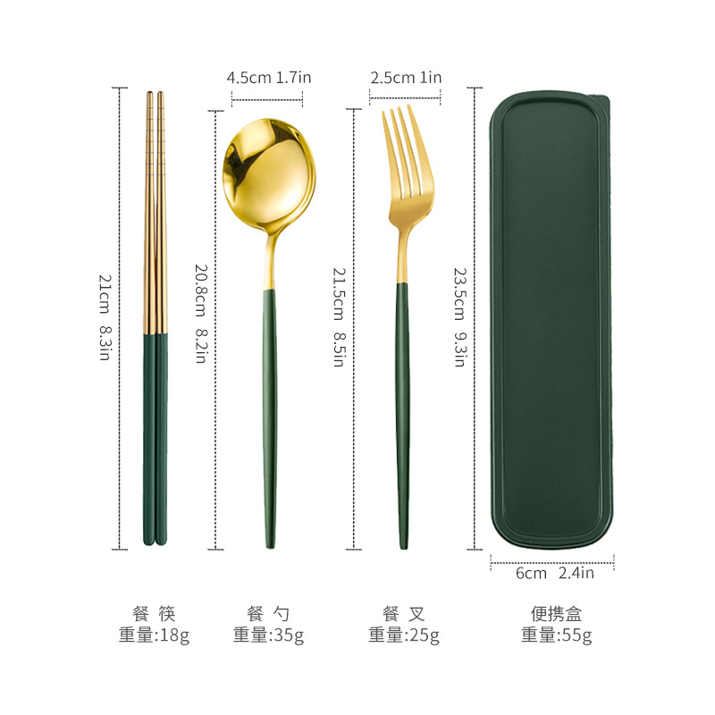 - 規格:金頭綠色筷叉勺【三件套】