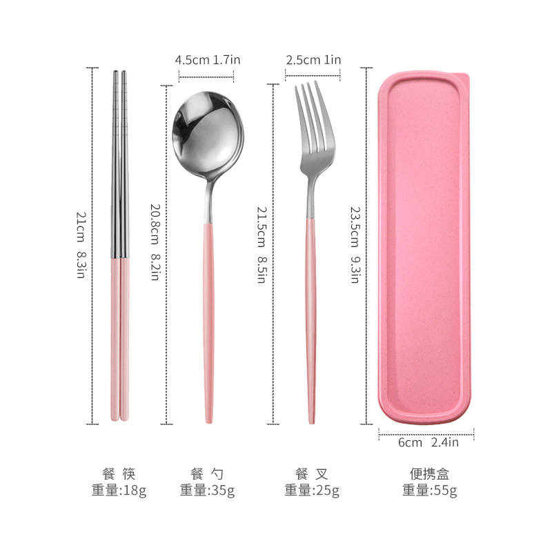 - 規格:銀頭粉色筷叉勺【三件套】