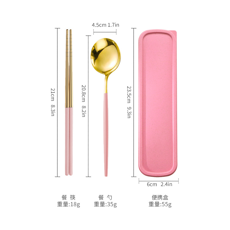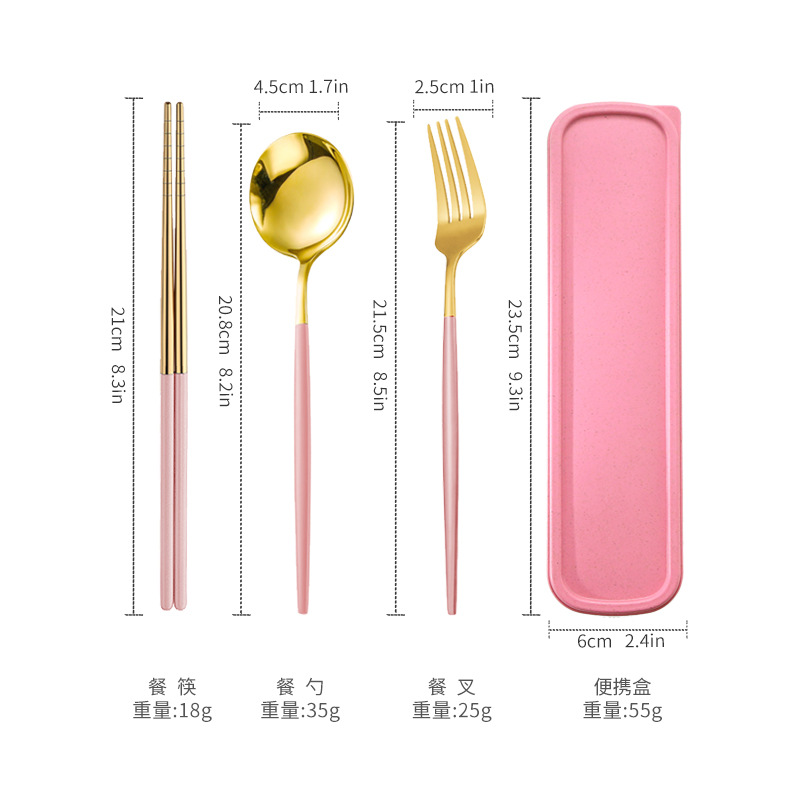 - 規格:金頭粉色筷叉勺【三件套】