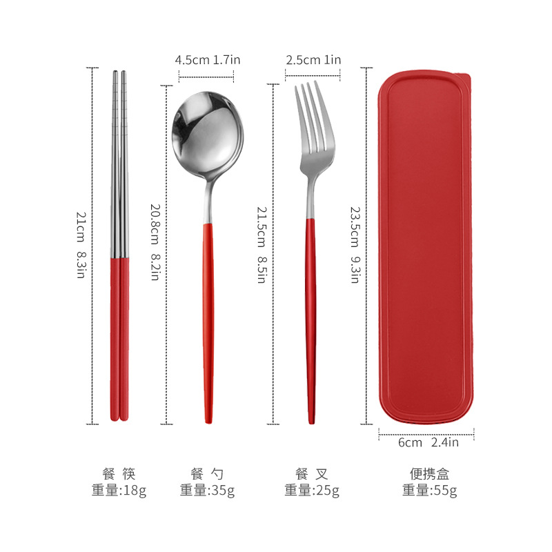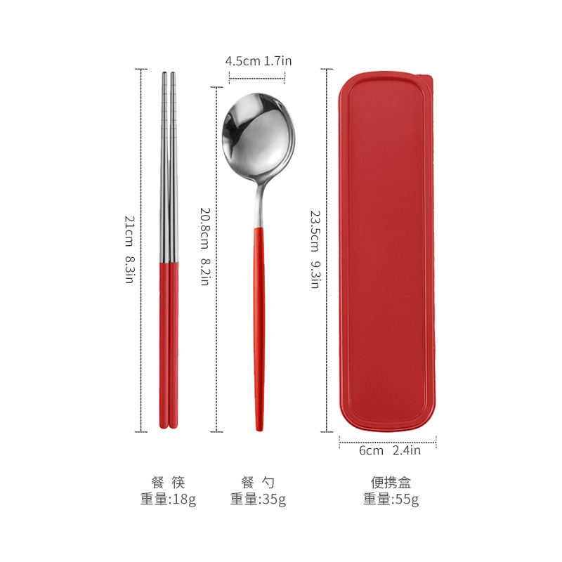 - 規格:銀頭紅色筷叉勺【三件套】