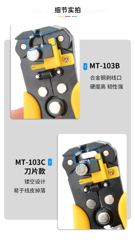 - Specifications and models: MT-103B yellow and black handle