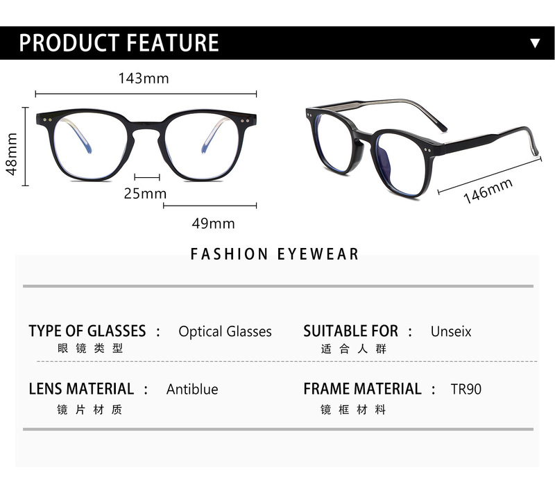 - 眼鏡款式:方框