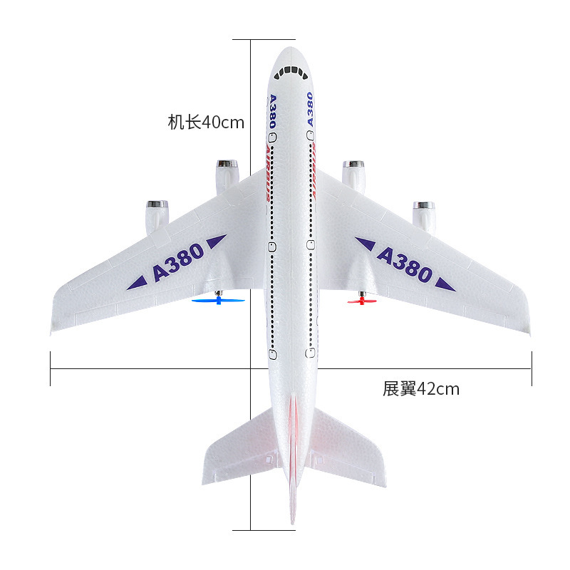 - 特色功能:仿真A380客機模型;EPP材質,抗摔耐撞;六軸陀螺儀技術,飛行平衡穩定;配置LED彩色燈帶。
