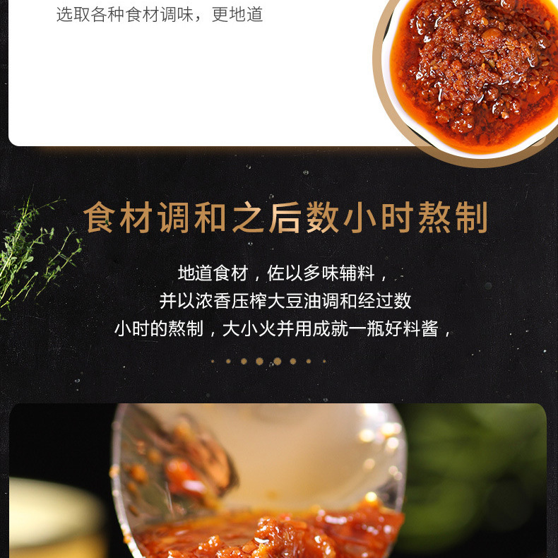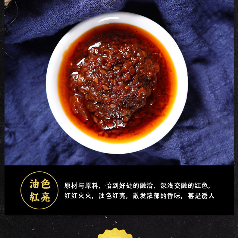 - Raw materials and ingredients: refined vegetable oil, diced mushrooms, red oil, yak meat, etc.