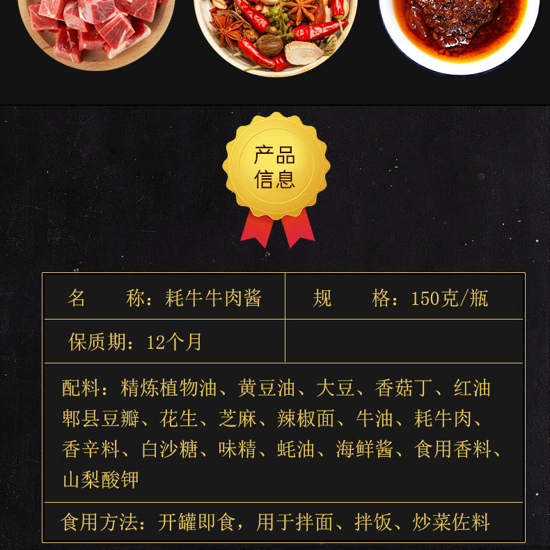 - Packaging specifications: Spicy yak meat sauce 150g/can