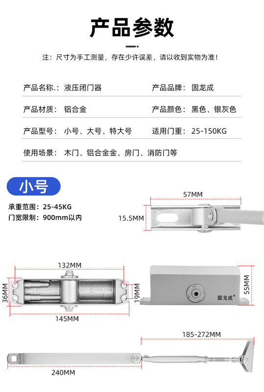 - 規格:小號型閉門器【銀色25-45KG】【全自動關門】