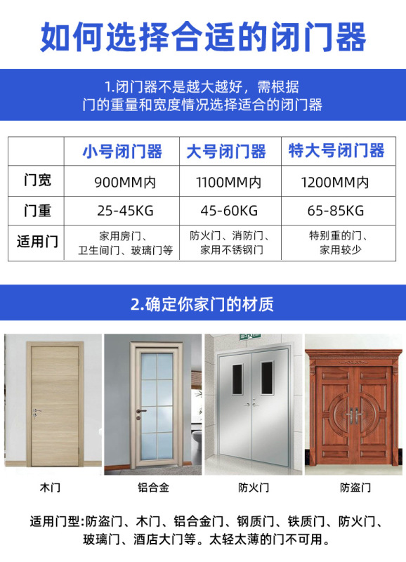 - 規格:特大號型閉門器【銀色65-85KG】【全自動關門】