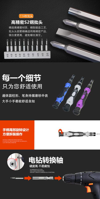 - Specifications and models: 135-in-1 multifunctional screwdriver set (black and purple) *4mm