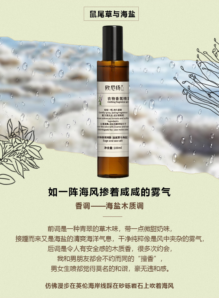 - 淨含量:衣物香氛噴霧(鼠尾草與海鹽)
