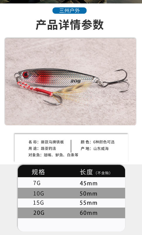 - 規格:7g鐵板鈎+黑金剛6062三本鈎
