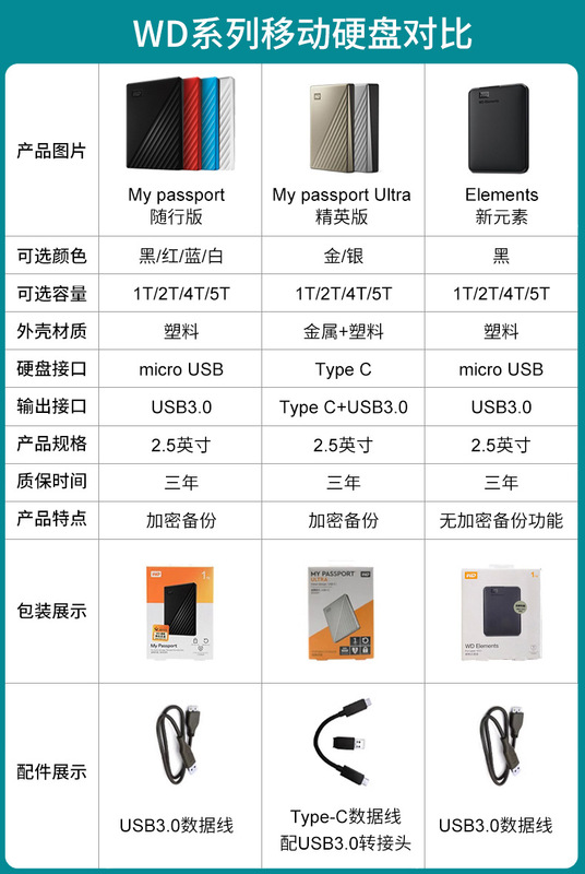 - Packing list: Original genuine mainland hard drive + Western Digital USB3.0 data cable + instruction manual