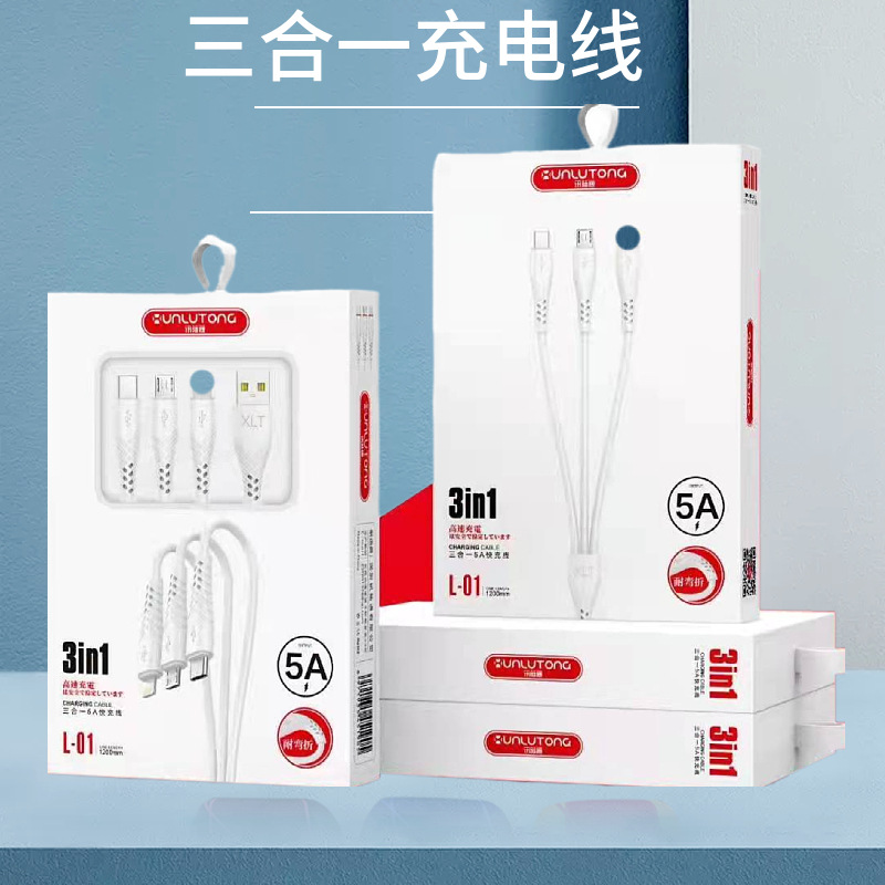 - 型號:L-01一拖三充電線