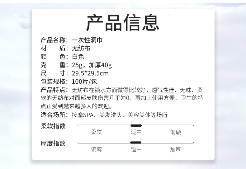 - 規格:40克高檔無紡布(100片/包)
