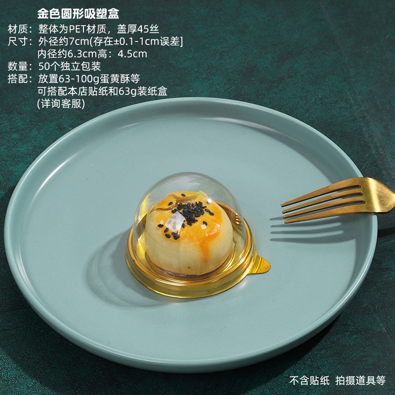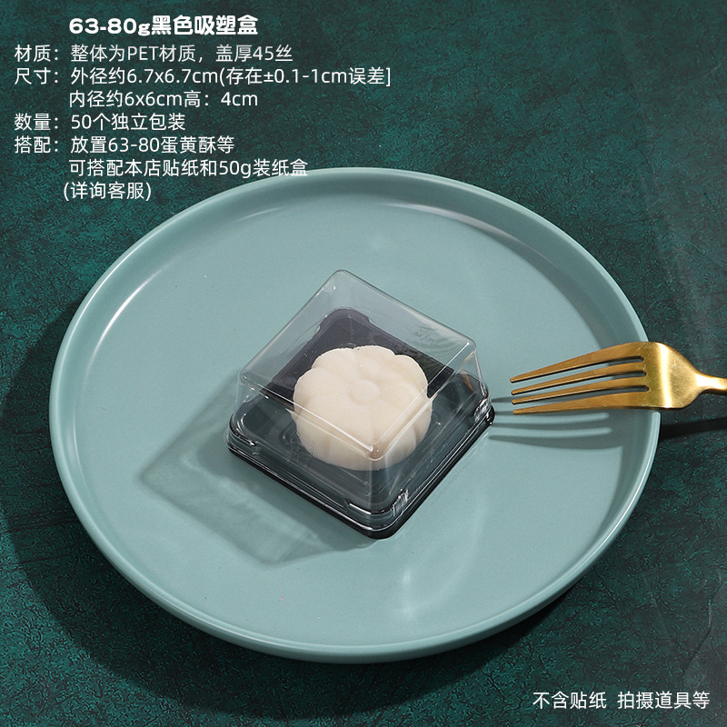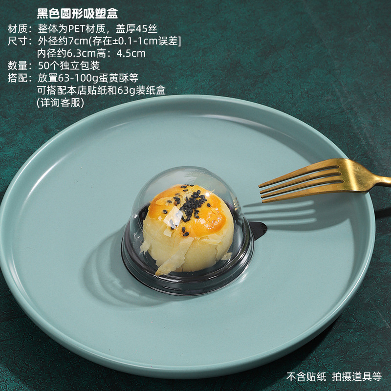 - Specifications: Thickened 63-75G black round egg yolk cake (67 packs/box) 4 yuan/pack