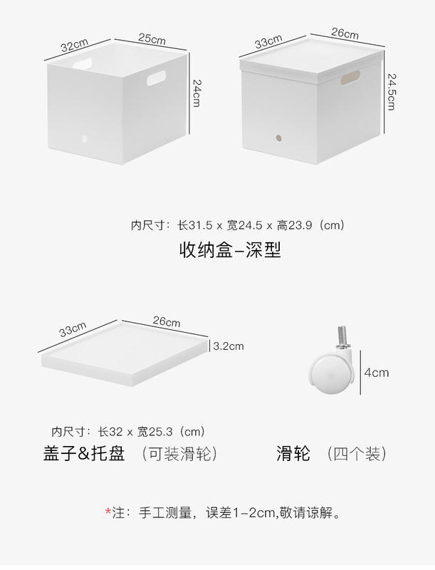 - Specifications: lid = tray
