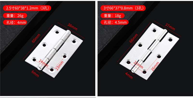 - Specifications: 304# steel core 2.5 inches 63*43*1.2mm (3 holes)