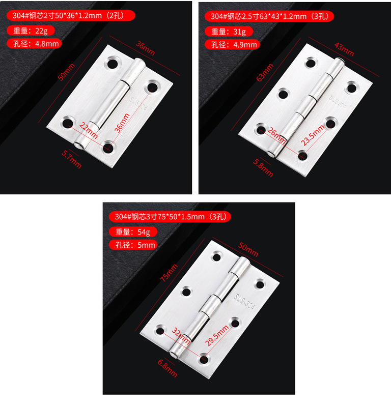 - Specifications: 304# steel core 3 inches 75*50*1.5mm (3 holes)